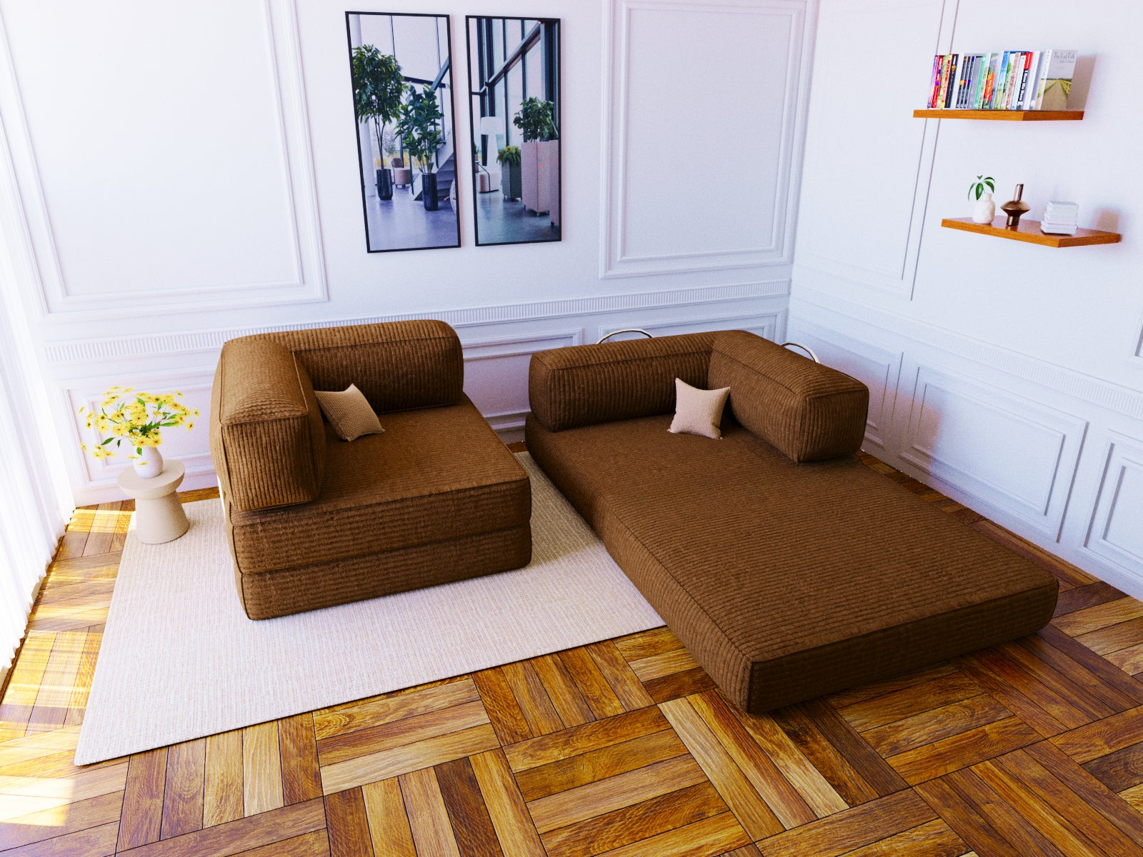 - The floor seat can be folded and transformed into a single-seater sofa.